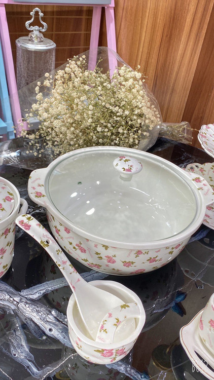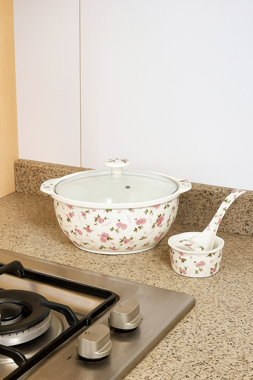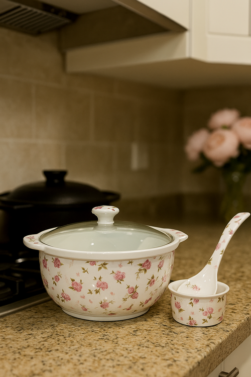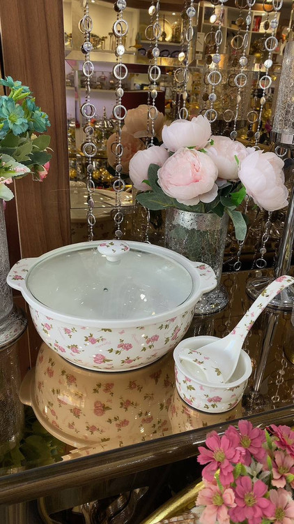 قابلمه چینی بن چاینا گل قرمز و‌ملاقه