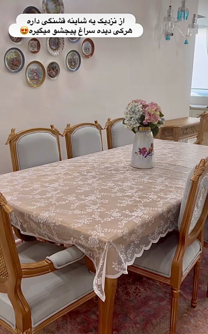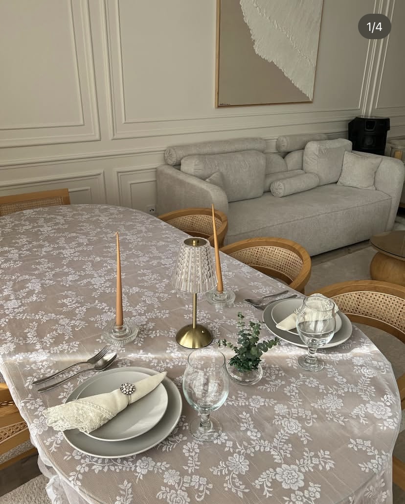 رومیزی تور دانتل پینک لند ترک ۸ نفره نفره ۲ طرف دالبر سایز ۲۵۰*۱۵۰
